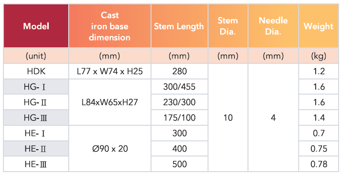 4.Base has 2 retractable gage pins to set against edge of a surface plate.
